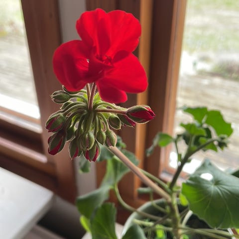 Krukväxt med röda och gröna blad i plastkruka. Växten står i en rund kruka med dräneringshål och jord. Passar som inomhusväxt i fönster eller på annan ljus plats. Kräver regelbunden vattning och normal rumstemperatur.