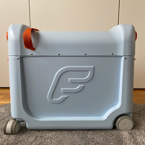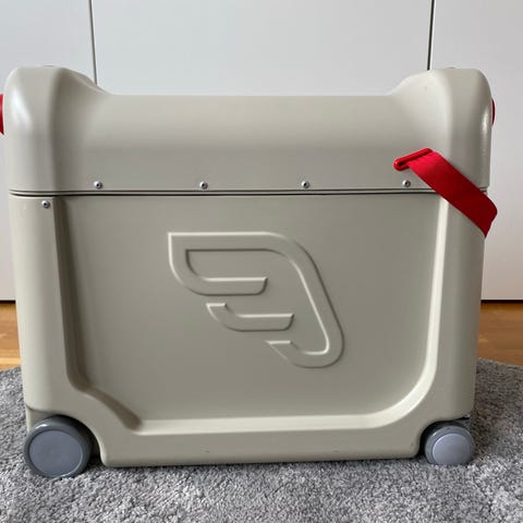 Resväska från Jetkids by Stokke i vitt. Väskan har hjul och bärhandtag. Kuddar ingår. Begagnat skick men allt fungerar bra. Köpt ny för två år sedan för 2000 kr.