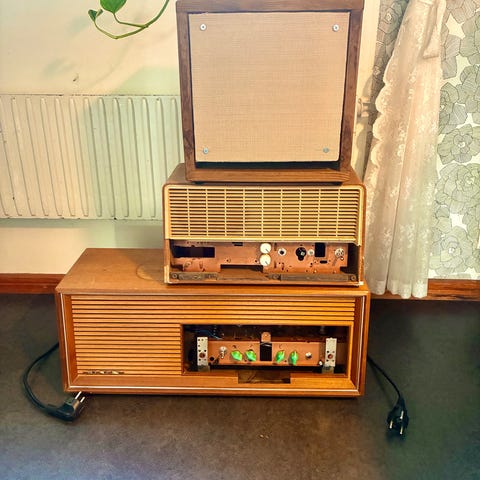 En vintage Tandberg 64X bandspelare. Bandspelaren är en rullbandspelare för ljudinspelning och uppspelning. Avsedd för 110–245 V och 50 Hz. Produkten levereras med originalkartong och skyddande frigolitinsats enligt bilderna. Lämplig för uppspelning och inspelning av ljud på rullband i hemmiljö. Förstärkare behövs. Köpt ca 1967.