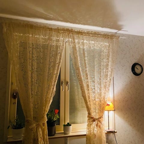 Korta gardiner med fina mönster.