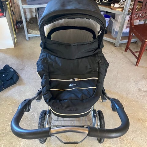 Finns några ställen på detaljerna som är solblekta. Å några andra små revor, annars är vagnen fin. Kan skicka mer bilder om det behövs! Följer med fotsack, skötväska, regnöverdrag och en fodrad åkpåse.