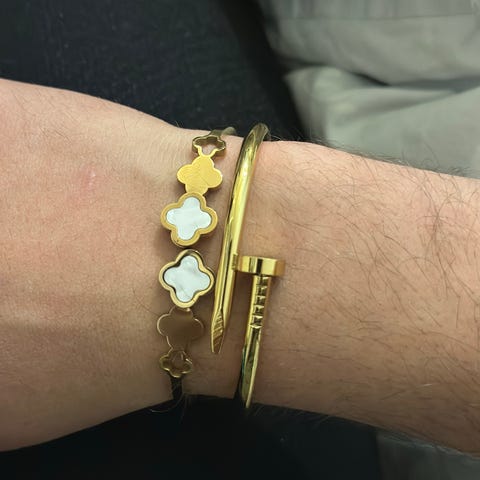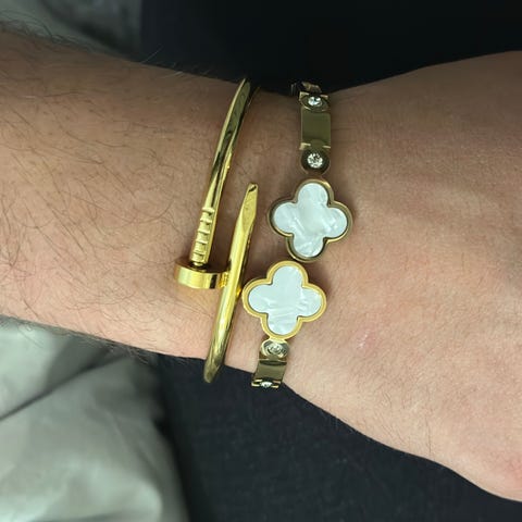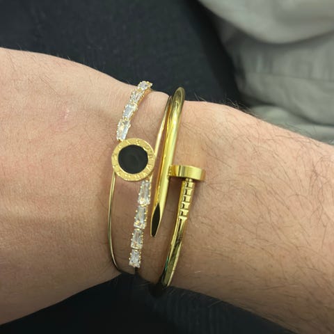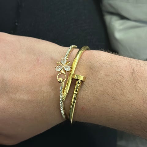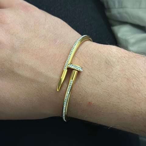 Cartier armband i guld med detaljer i diamant, unisexmodell. Smycket är utformat i ädelmetall med infattade diamanter och passar både vardag och mer uppklädda tillfällen. Lämpligt för användning av alla kön som föredrar klassiska smycken i guld med diamantdetaljer.