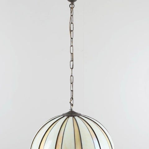 Miranda, Tiffany reproduktion, taklampa i glas och mässing 19 talets andra hälft