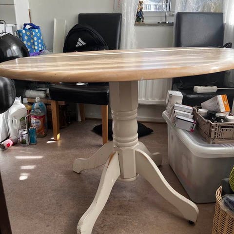 Lite märken såklart men slipa och olja så har du ett helt nytt bord!