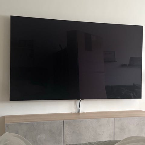 LG OLED65B7V tv med 65 tum skärm i vit färg. OLED-panel ger hög kontrast och djup svärta. Tv:n har flera HDMI-ingångar, USB-portar samt nätverksanslutning. Passar för film, tv-tittande och spel i vardagsrum eller större rum. Väggfäste kan användas enligt standardiserat VESA-mönster på baksidan (kontrollera exakta mått i manual eller på tillverkarens webbplats).