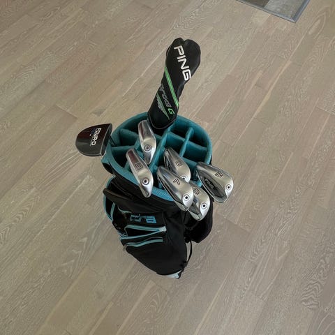 Fina och förlåtande damklubbor i halvset med matchande vagnbag