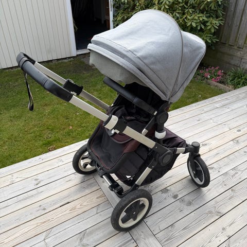Medföljer ligg- och sittdel plus en grå summerbreeze sufflett.