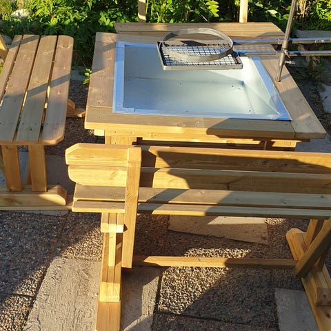 Nytillverkad Grillstad & 4 st bänkar av Norrlands furu, Tryckimpegnerat.virke