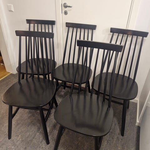 3 svarta pinnstolar