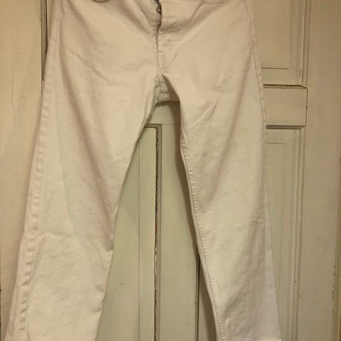 Jättesnygga Arket Jade Cropped jeans för dam med midjemått W29. Byxorna är vita och tillverkade i huvudsak av bomull, enligt lappen 79 % ekologisk bomull, 20 % återvunnen bomull och 1 % elastan för lätt stretch.