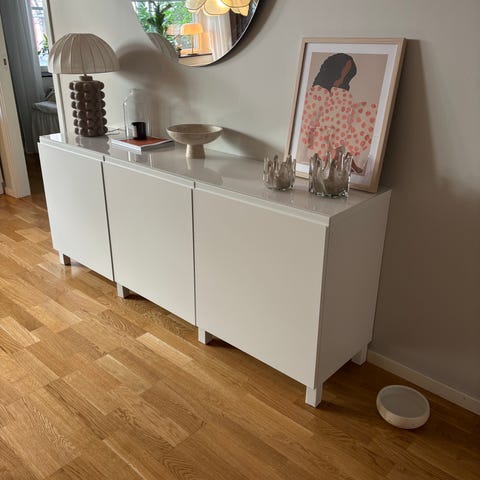Klassisk BESTÅ/LAPPVIKEN vit från IKEA. 3 moduler med måtten 60x22x64 som jag monterat ihop till en längre kombination.