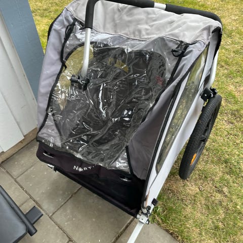 Säljer en smidig och stabil cykelvagn från Hamax i kanonskick! Perfekt för både cykelturer och promenader och jogging.