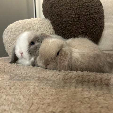 Vi söker akut nytt hem till våra två kaniner. Dom har bott fritt inomhus och är helt rumsrena, har även bott utomhus på somrarna när vi bott på landet. Båda är kastrerade, en hona född 2021 (vita) och hane född 2023 (svarta). Söker akut nytt hem då vår dotter blivit allergisk.
