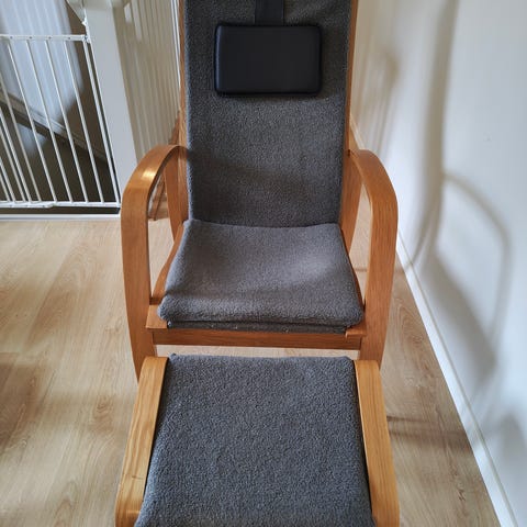 Funktionell snygg grå fåtölj med fotpall