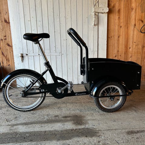 En stabil och lättmanövrerad cykel för vuxna med två hjul bak.