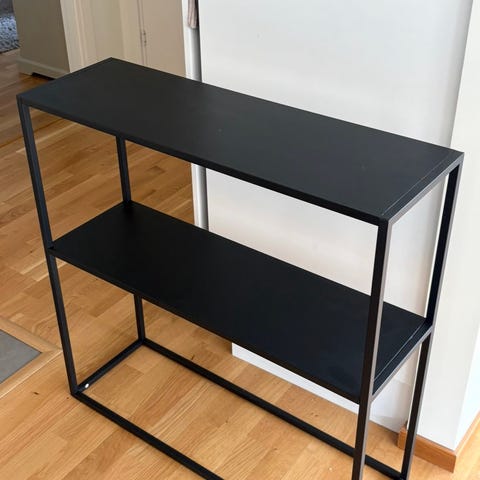 Möbeln har en öppen design med ett genomgående hyllplan som ger gott om plats för böcker, tidningar eller elektronik.