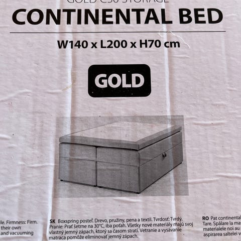 Mio New York förvaringssäng i storlek 140x200 cm. Sängen har lyftbar madrassdel med förvaringsutrymme i sängbotten. Klädsel i beige textil och metallben på ca 12 cm. Inkluderar bäddmadrass. Den enda defekten sängen har är att handtaget till förvaringsdelen har lossnat på ena delen.