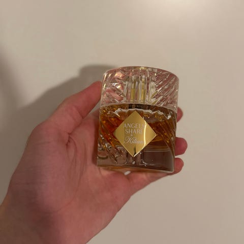 Skick: Se bilder för mängd (ca 30–40% kvar). Flaskan och det karaktäristiska hexagonala locket är i fint skick.