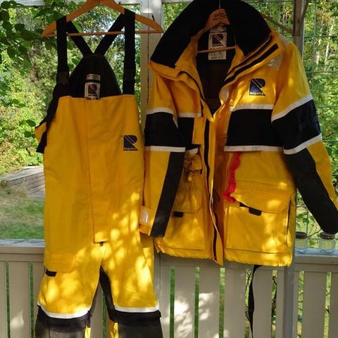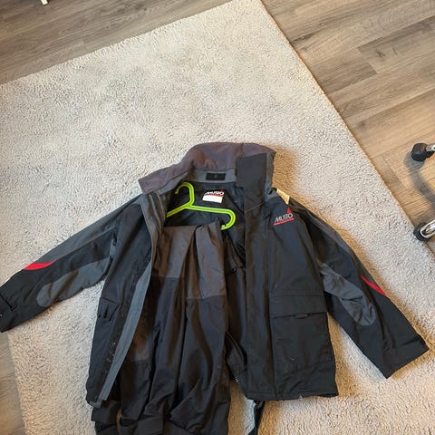 Jättefint seglarställ, perfekt för äventyr på sjön. Fina funktioner: garanterat vattentätt och vindtätt utan att kompromissa med andningsbarheten, reflexer, fleecekrage, luva, mysfickor, justerbara hängslen, förstärkt rumpa och knän - och mycket mer! Storl M på byxa och jacka. Inhandlat 2021, lite använt. (Segelbåten såldes inför säsongen 2024).