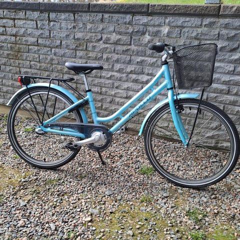 Säljer en tjejcykel i mörk färg av märket Apollo model SVEA, tum 24 med 3 Shimano växlar. Frambroms, fotbroms bak, korgen fram samt pakethållare. Tillkommer med originallås 1 nyckel, en väldigt fin och välvårdad cykel i väldigt bra skick. Perfekt för våren/sommaren som kommer.