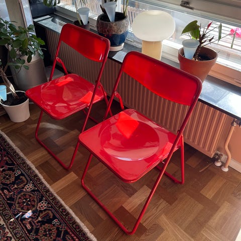 IKEA klappstol i röd färg.