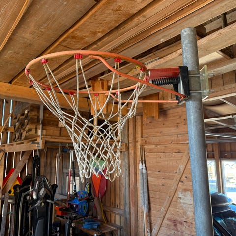 Stativet kan justeras från 200 till 305 cm. Korgens nät är väderbeständigt. Basen har inbyggda hjul, vilket gör den lätt att flytta.