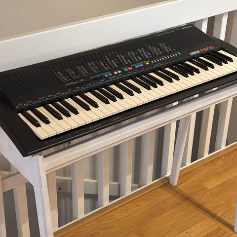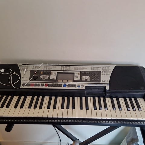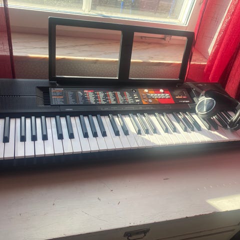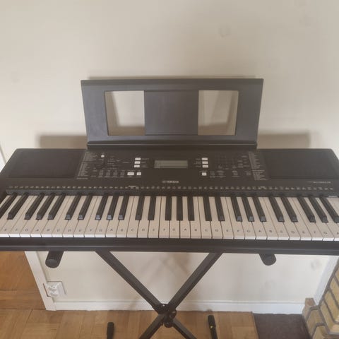 Yamaha PSR-F51 keyboard i svart utförande. Elektroniskt tangentbord med fullstora tangenter och inbyggda ljud, stilar och låtar som väljs via kontrollpanelen.