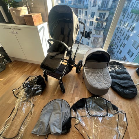 Säljer även en beige åkpåse, snacktray, parasoll allt från bugaboo. Kan göra paketpris elr sälja separat!