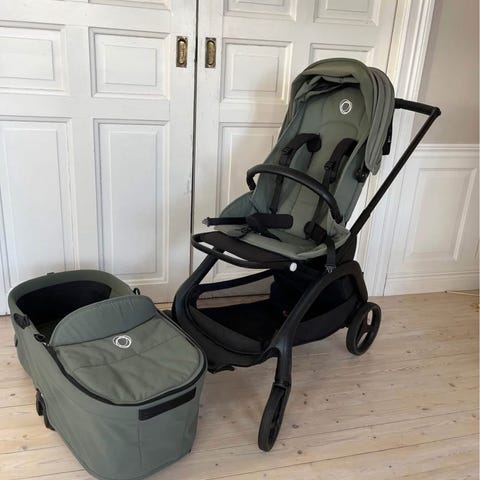 Ingår: liggdel, sittdel och regnskydd från bugaboo, kan användas från nyfödd tills dess att barnet inte vill åka vagn mer.