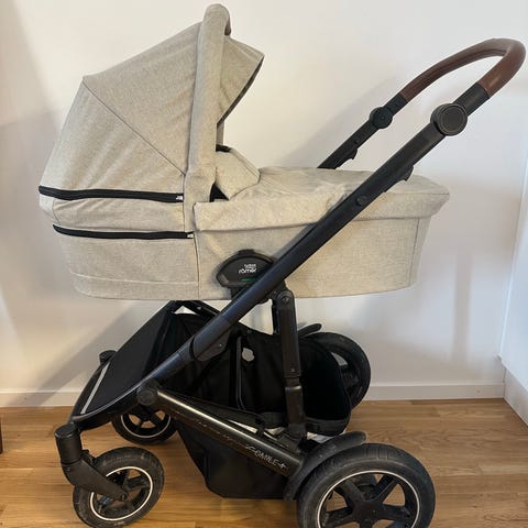 Fin Britax Smile 3 (III), har använts av två barn. Vagnen är i gott använt skick, fungerar problemfritt, ren och fin klädsel, inga skador på handtag.