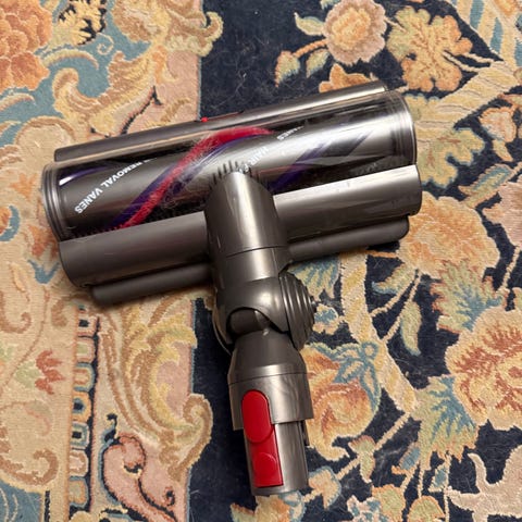 Helt nytt Fluffy Optic-munstycke från Dyson med den patenterade lasern som lyser upp allt damm på golvet.