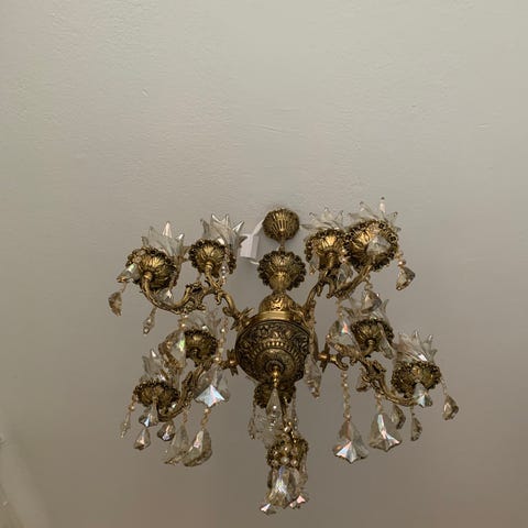 Säljer en pampig 8-armad takkrona i mässing av flamsk barockmodell. Lampan har en diameter på 70 cm och ger ett stämningsfullt uttryck som passar perfekt i sekelskiftesmiljö eller matsal. Den är i fullt fungerande skick, dimbar och säljs helt komplett med de åtta dekorativa glödlamporna på bilderna. Själva armaturen är 43 cm hög och den tillhörande kedjan är ca 68 cm lång men kan kortas vid behov.