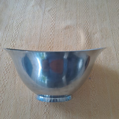 Dansktillverkad kombinerad art deco ljusstake och vas i tenn från 20/30 talet modell 1753. Har en skålformad, vågig kant och två ljushållare på sidorna. Stämplar undertill, tung, gedigen och vacker.