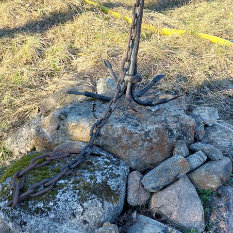 Galvad kätting i kraftig dimension, lämplig för förankring av båt.