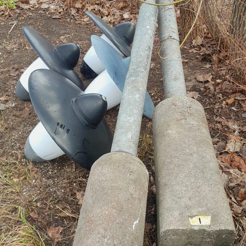 Flera olika ankare i metall med tillhörande tampar i olika längder.