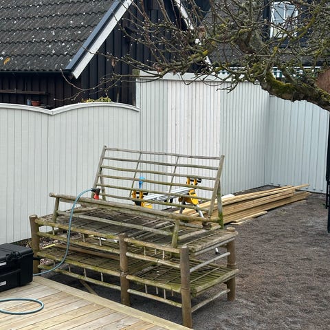 Soffgrupp och 2 solsängar