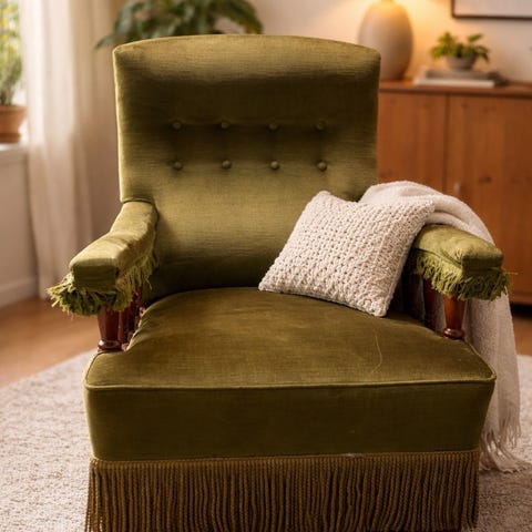 Vintage fåtölj i beige sammet