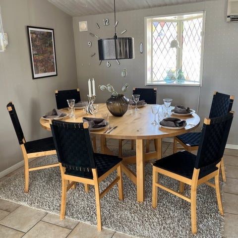 Mörbylånga bord från ikea samt 7 st gröna sammets stolar .