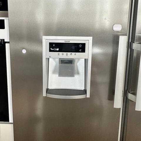 Modern frys från Siemens I rostfritt stål. Ismaskinen fungerar inte men kan kanske fixas (islådan roterar inte när den skall tömmas på is. Vatteninkopplingen bakom frysen håller tätt.)