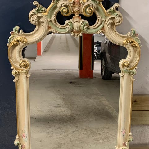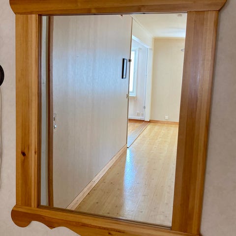 Stor rustik spegel i jätte fint skick. En liten skråma i ungefär mitten av spegeln.