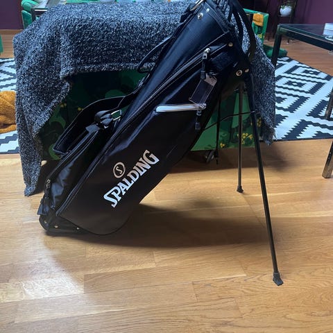 Säljer en svart golfbag från Spalding. Ganska liten, funkar som juniorbag. Perfekt för dig som går banan och vill ha en lätt och praktisk bag, då det är en bärbag, men funkar även på golfvagn.