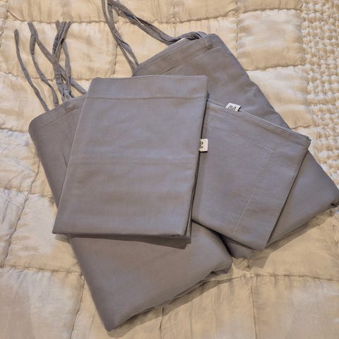 Sängkläder ifrån Mio i super mjukt material, beige och vit randiga. Endast upptvättade så dom är i helt nyskick. Tyckte inte att färgen passade som tänkt. Två påslakan och två örngott. 150x200.