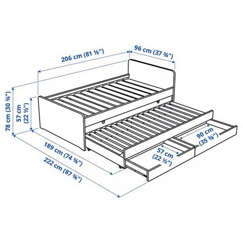 IKEA säng med extra utdragbar säng och förvaringslådor