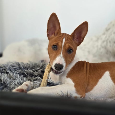 Han är fullt vaccinerad, frisk och mår väldigt bra. En trygg och härlig liten hund som passar perfekt som sällskap i ett kärleksfullt hem.