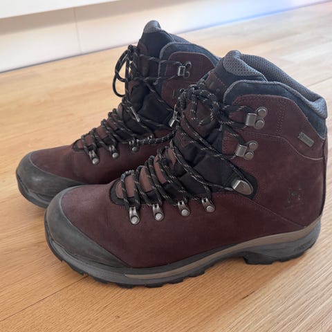 Säljer ett par stabila vandringskängor i gott skick. Modellen har extra bred läst och passar dig som behöver mer volym i kängan och / eller som har hallux valgus. Storleken är 7,5 vilket motsvarar 41,5.