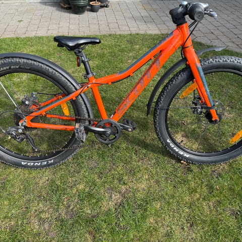 Mountainbike med skivbromsar, stötdämpare i gaffeln, 8 växlar. Tre år gammal.