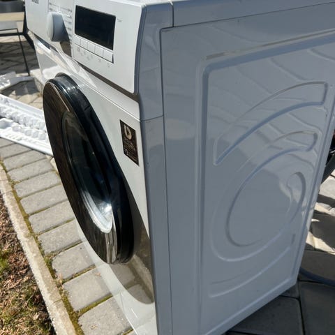 Siemens frontmatad tvättmaskin i vit färg. Tvättmaskinen ingick i husköpet. Enligt besiktningen fungerar den. Vi har testat att starta den och den verkar fungera, men vi har inte kört något tvättprogram.