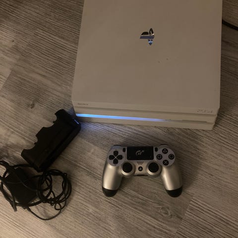 Playstation 4 Pro spelkonsol vit, laddtorn, 4 kontroller samt 3 spel
