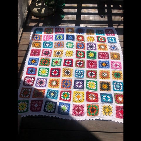 Handgjorda virkade mormorsrutor blå och ljus blå