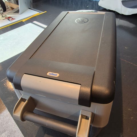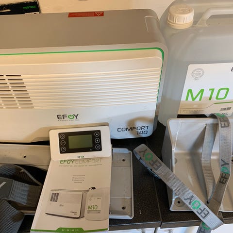 Komplett med 220V adapter (för att kunna förkyla boxen hemma i land). Drivs med 12/24 volt.